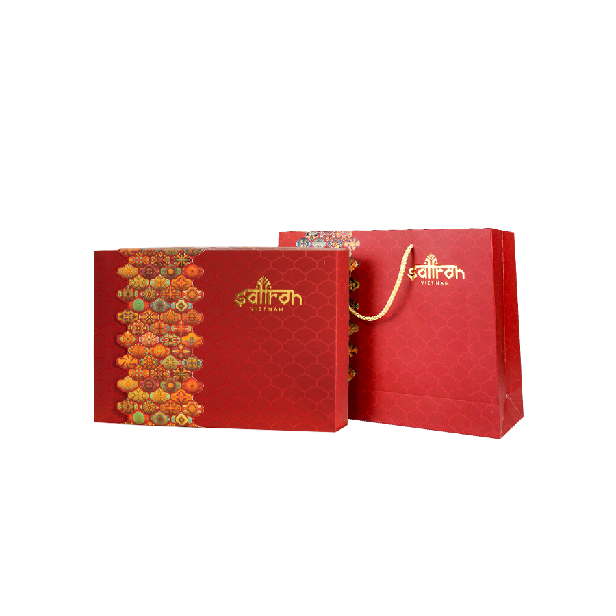 Hộp quà Ba Tư là một món quà tặng được đặt thiết kế riêng, với phần hộp đỏ được dập vân nổi tinh tế cùng đai quây họa tiết Ba Tư rực rỡ, độc đáo. Sắc đỏ đặc trưng của lễ Noel được nhấn nhá thêm họa tiết bắt mắt.