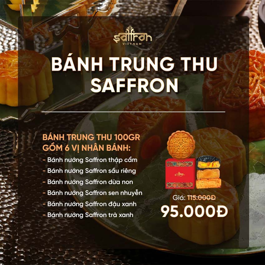 Bánh nướng Saffron là dòng bánh trung thu đặc biệt chỉ có riêng tại quà tặng Saffron, với phần nhân bánh được biến tấu có thêm hương vị độc đáo của Saffron, sẽ là vị bánh rất đáng thử.